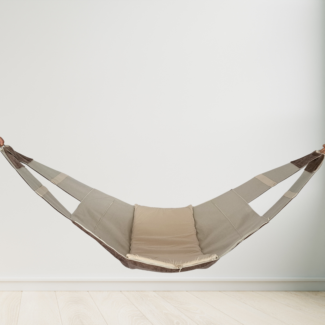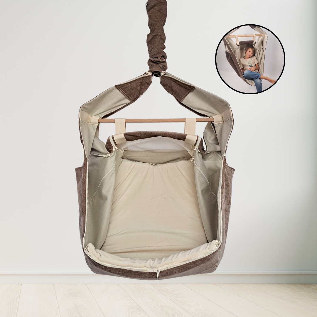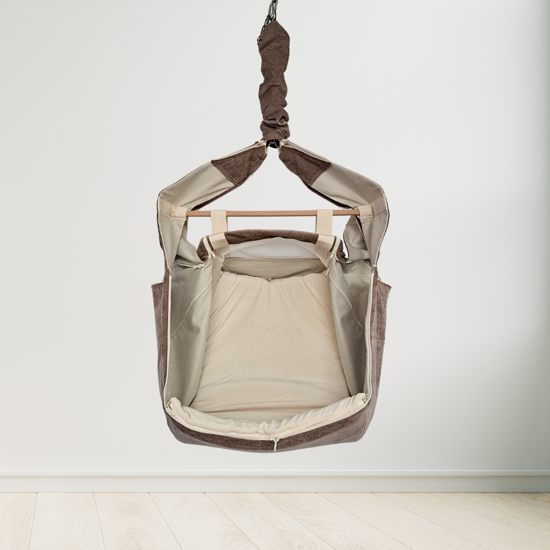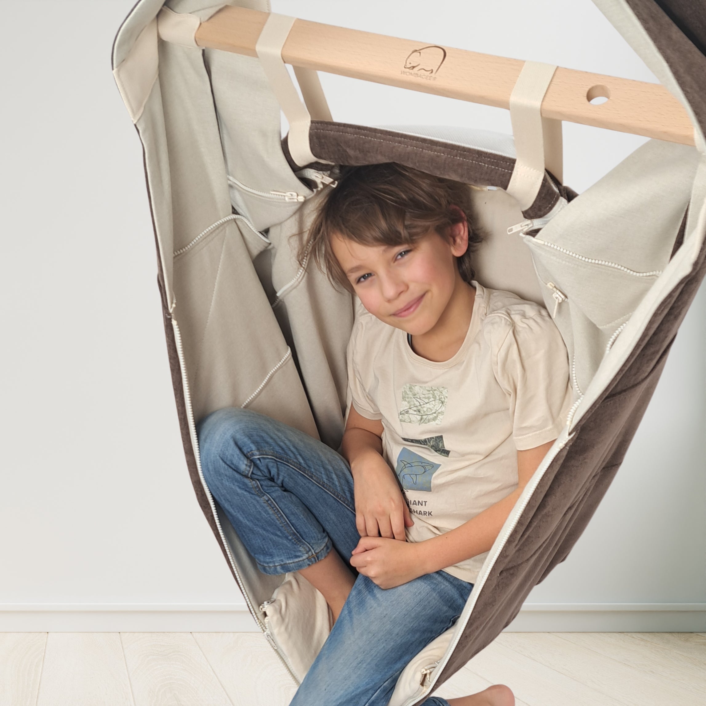 Die WOMBAGEE Hängewiege wurde von Anfang an mit einem tiefen, körpergerechten Liegebereich entwickelt, der dein Kind sicher umschließt. Durch das innovative Design mit mehreren Reißverschlüssen lässt sie sich in Größe und Form individuell anpassen — sodass die Wiege zu deinem Kind passt, nicht umgekehrt. Kein Raten. Kein Hoffendaspasstschon. Sondern eine Hängewiege, die wirklich auf dein Kind ausgerichtet wird.