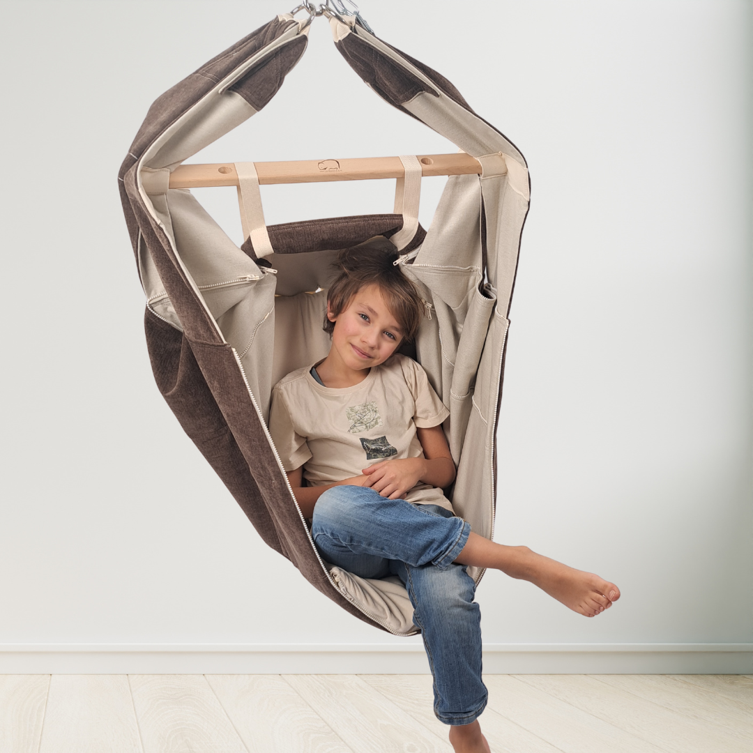 Sobald dein Kind größer wird, machst du mit ein paar Handgriffen aus der Wiege einen Hängesessel fürs Kinderzimmer: gleiche Aufhängung, neue Form, plötzlich wird daraus der Lieblingsplatz zum Schaukeln, Vorlesen und „nur kurz ausruhen“.
