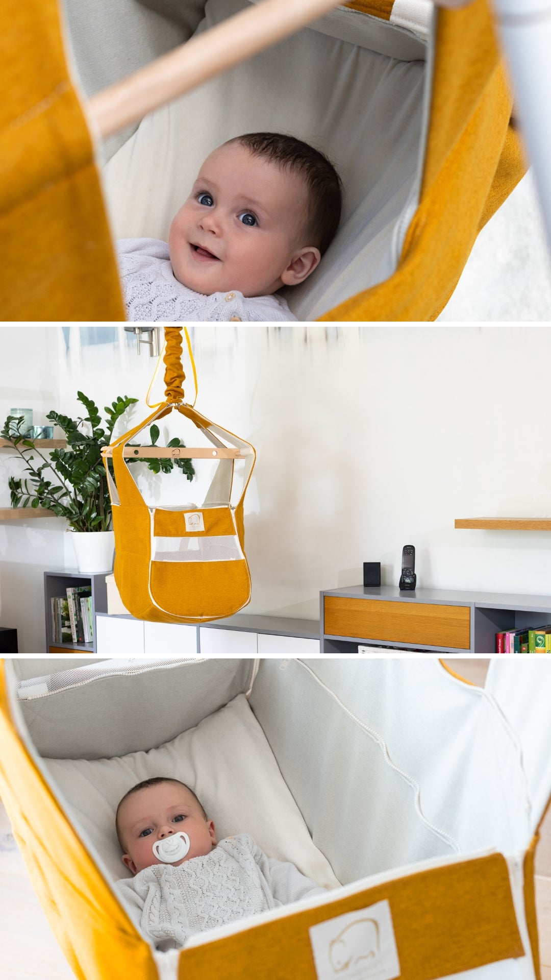 In der Babyphase ist die Wiege zum Schlafen gedacht. Sobald sich ein Kind aktiv hochziehen oder aufsetzen kann, empfehlen wir den Umstieg zur Hängematten-/Hängesessel-Variante (je nach Modell). Das gehört zum Konzept „mitwachsend“ – die Wiege passt sich dem Entwicklungsstand an.