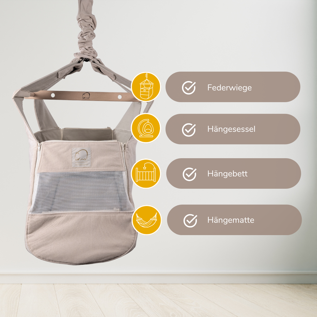 WOMBAGEE® Federwiege als Federwiege- Entspannung und natürlich sanfter Schlaf fürs Baby