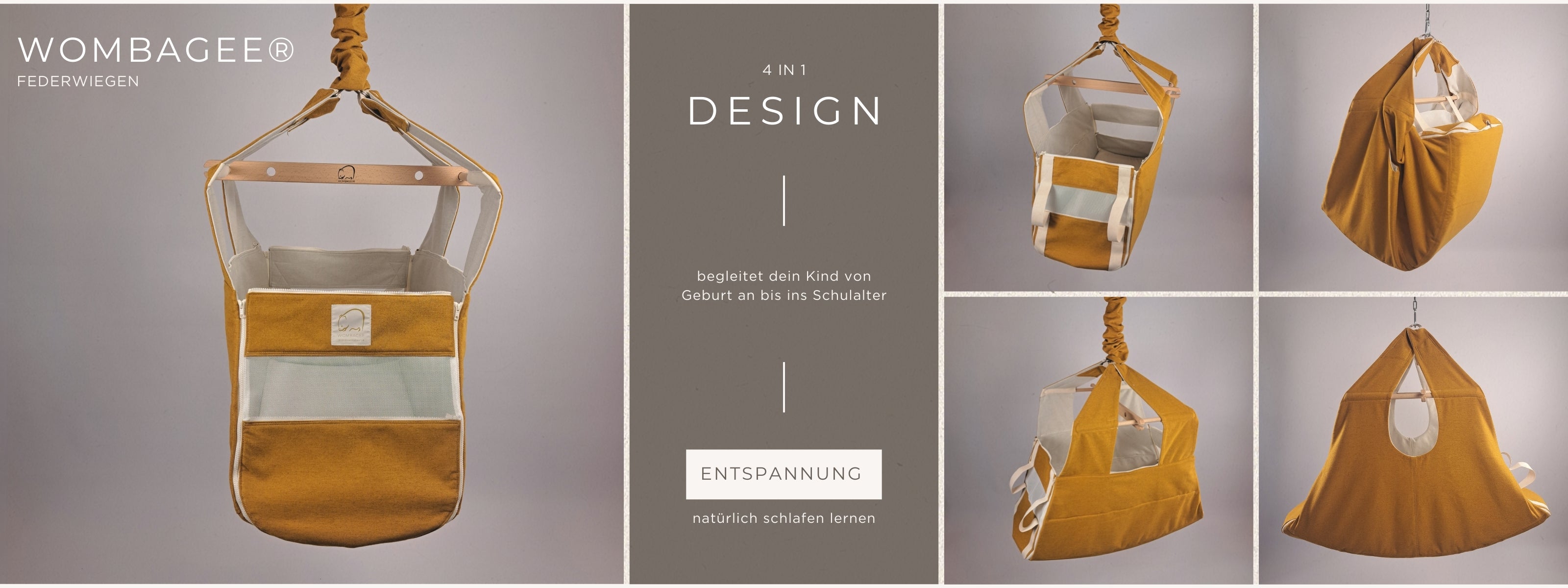 Die meisten Federwiegen haben eine Aufgabe: Neugeborene in den Schlaf wiegen. Nach 6–8 Monaten sind sie zu eng, zu klein, zu starr. Die Wombagee® wurde von Anfang an für mehr konzipiert: