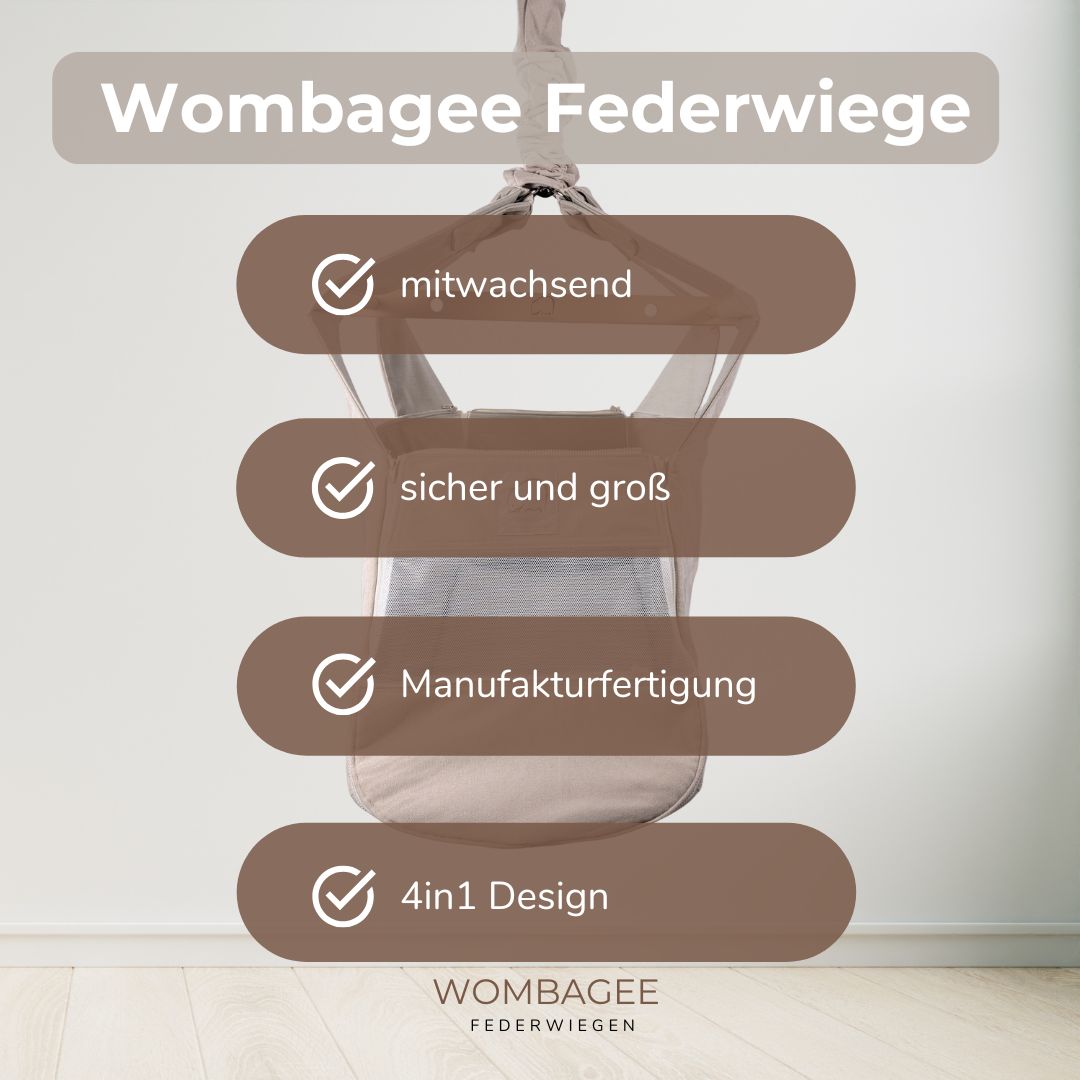 Eine hochwertige Federwiege wie die Wombagee® ist keine Notlösung, sondern eine bewusste Entscheidung für natürlicheren, ruhigeren Babyschlaf – für dein Kind und für dich. Mit der richtigen Ausstattung begleitet sie euren Familienalltag vom ersten Tag bis weit ins Grundschulalter.