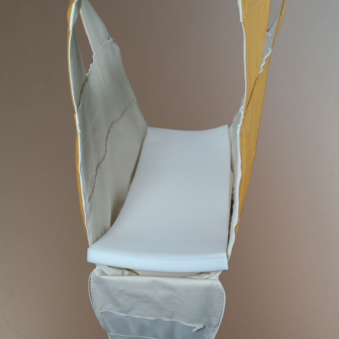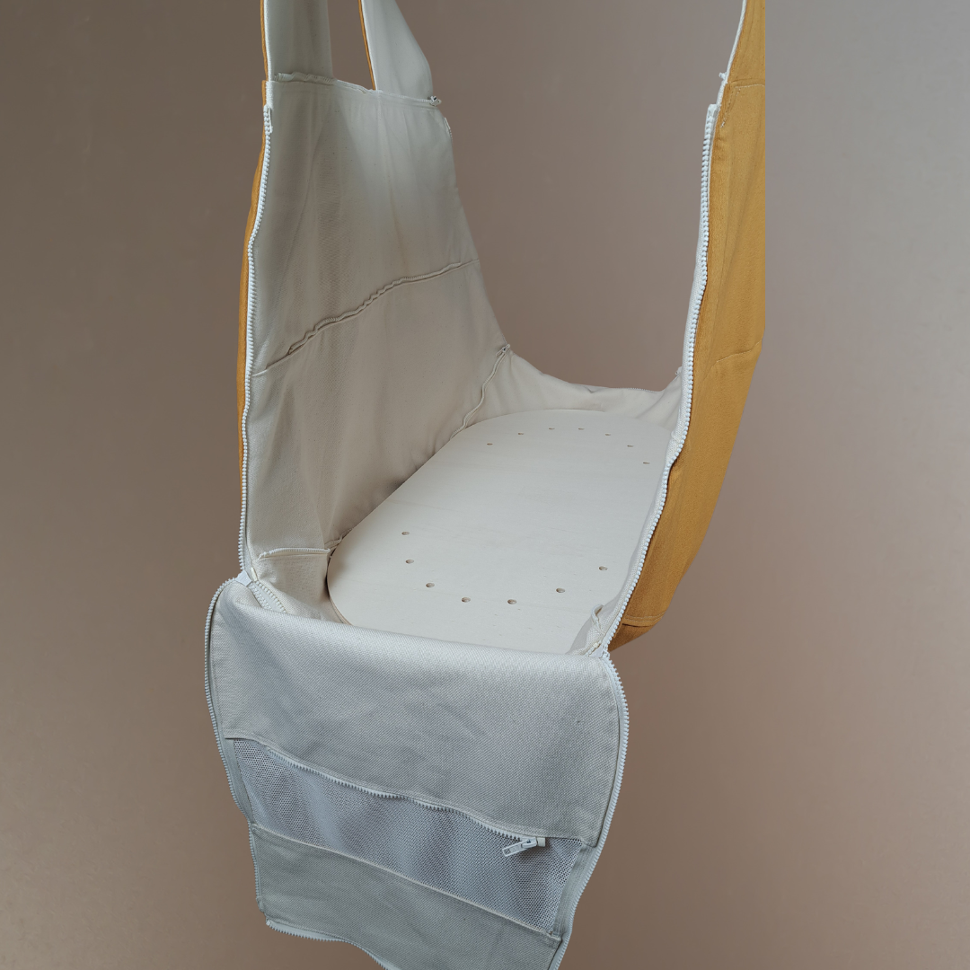 Die feste Unterlage für die WOMBAGEE® Hängewiege verwandelt die Wiege in ein Hängebett.