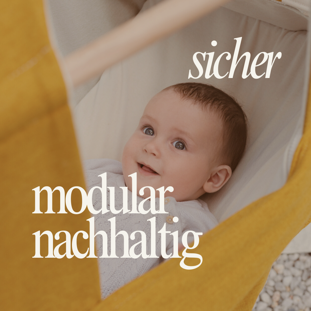 Sie bietet deinem Baby den perfekten Start ins Leben – geborgen, sicher und von sanften Schwingungen getragen, um dann zu wachsen - wenn dein Kind größer wird, wird die Wiege einfach zur gemütlichen Hängematte, zum Hängebett oder Sessel umgebaut – ganz ohne Kompromisse bei Komfort oder Sicherheit.